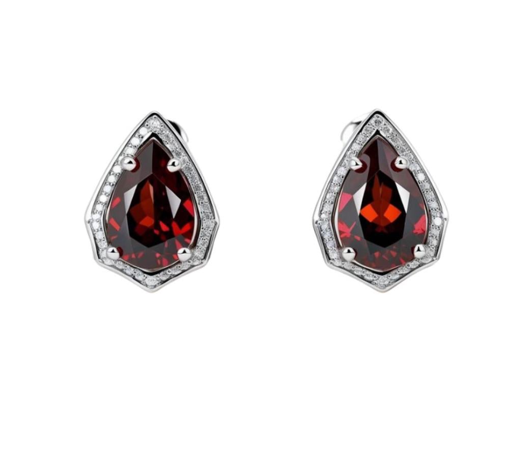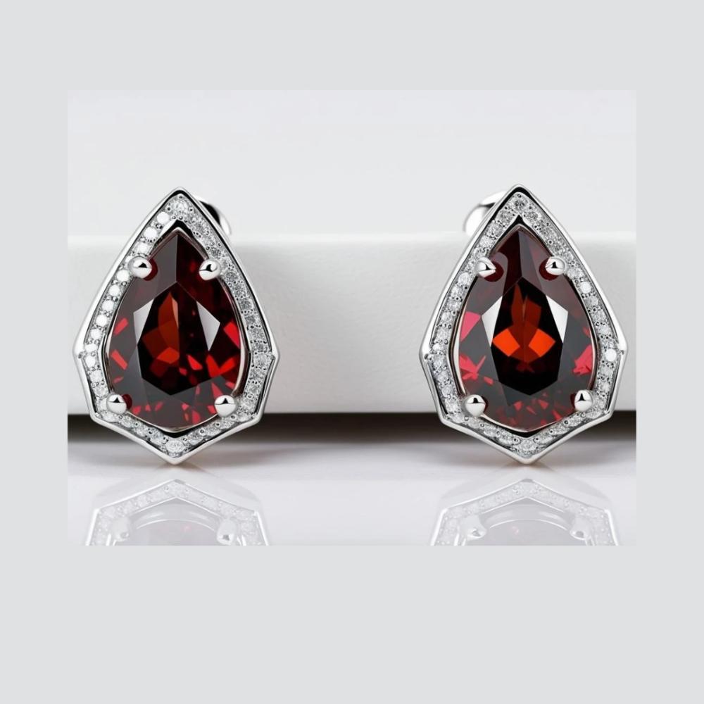 حلق ذهب عيار ١٨ ٢جرام حجر جارنت طبيعي والماس
