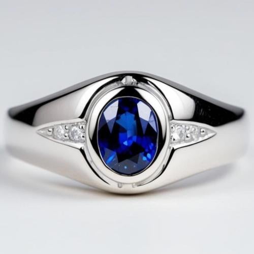 خاتم فضة رجالي حجر زفير طبيعي والماس
